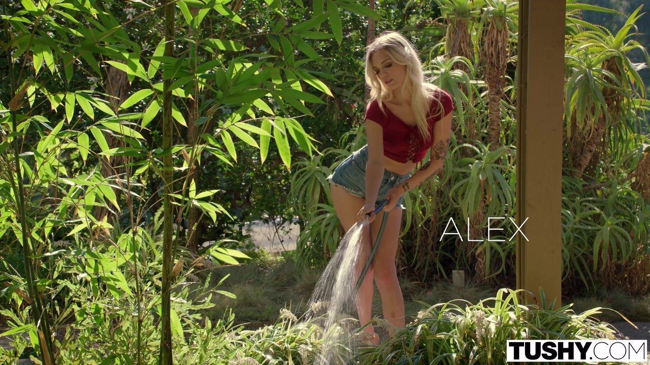 Застав юную блондинку с тату, выходящую из душа, мужик не удержался и после короткого поцелуя заснул член в её рот. После активного траха её дырочек, он спустил сперму в её жопу.