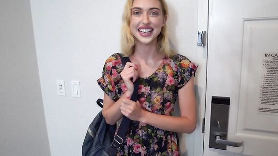 Она показала агенту свою интимную стрижку и отсосала большой член на кастинге, а после отдалась незнакомцу. Возбуждение достигло пика после нескольких поз, и сперма потекла в рот юной блонды.