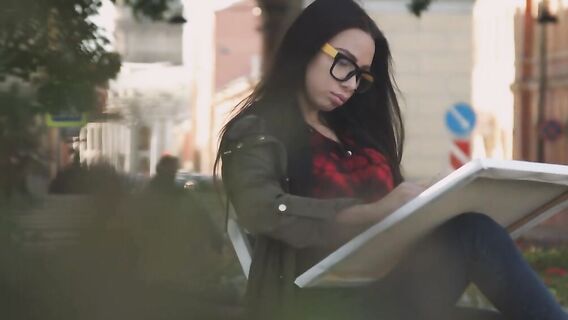 Молодая художница с силиконовыми сиськами приглашает парня к себе домой. Брюнетка стонет от куни, трахается во всех позах и, получив оргазм, даёт парню кончить в рот и слизывает с члена сперму.
